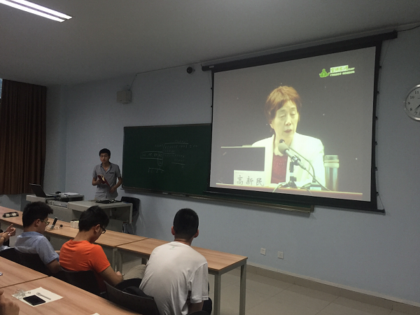 在会议的下半段,高书记播放了一段“两学一做”的相关讲座视频,同学们都更好地理解了两学一做,理解了其关键精神,也更加警醒了作为一名党员、预备党员、积极分子的责任和底线。